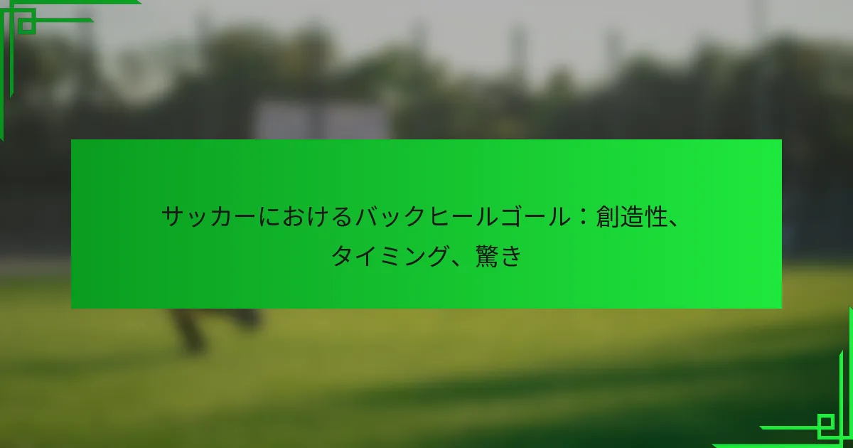 - セットプレー:コーナーキックやフリーキックの際に、選手がバックヒールを使ってディフェンスを驚かせることがあります。