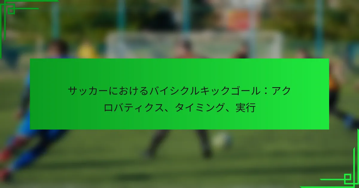 バイシクルキックは、選手が空中でボールを蹴るアクロバティックなサッカーの動きです。効果的に実行するためには、適切な身体の配置、ジャンプのタイミング、正確な足の位置に焦点を当てます。