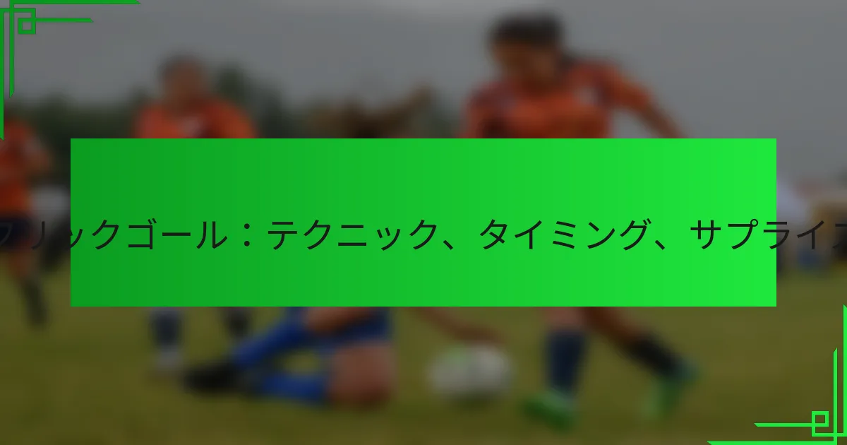 フリックゴールの驚きの要素は、予期しないタイミング、角度、技術で構成されており、ディフェンダーを不意を突きます。これらの要素をマスターすることで、選手は相手を効果的に欺き、予測が難しい得点機会を生み出すことができます。