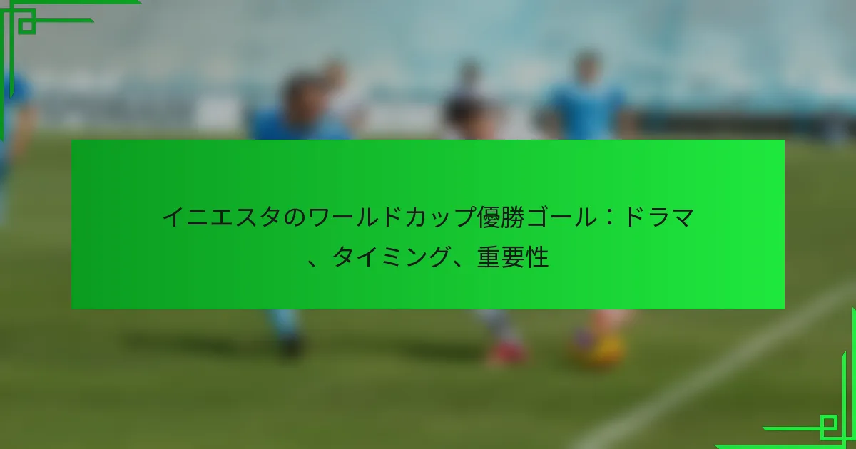 アンドレス・イニエスタの2010年のワールドカップ決勝ゴールは、技術的なスキル、選手間の心理的変化、メディアの影響、そしてワールドカップの物語に与える持続的な影響の組み合わせにより重要でした。これらの要素は、ゴールのドラマチックな文脈とサッカー史におけるその重要性に寄与しました。