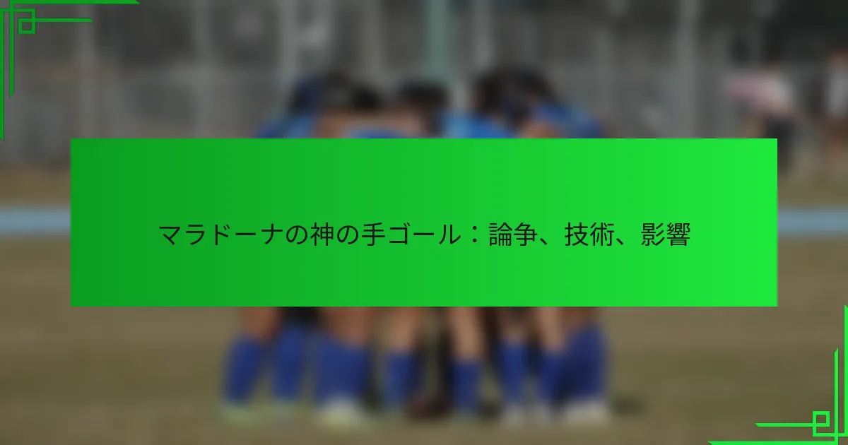 マラドーナの神の手ゴールは、1986年のFIFAワールドカップ準々決勝でアルゼンチンとイングランドの試合中に決められたもので、サッカー史上最も物議を醸す瞬間の一つとして残っています。この象徴的なプレーは、マラドーナが手を使って得点したもので、その正当性について激しい議論を引き起こし、スポーツにおける技術とルール違反の微妙な境界を浮き彫りにしました。このゴールは試合の結果に影響を与えただけでなく、サッカーにおける公平性の認識を形成し、マラドーナの複雑な遺産を確立しました。