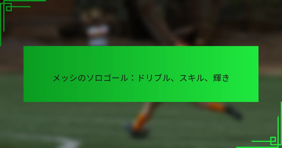 メッシのソロゴールは、彼の卓越したドリブルスキルを示し、彼のキャリアのハイライトとなっています。このゴールに関する重要な統計には、得点した距離、かわしたディフェンダーの数、シーズンの文脈における重要性が含まれます。