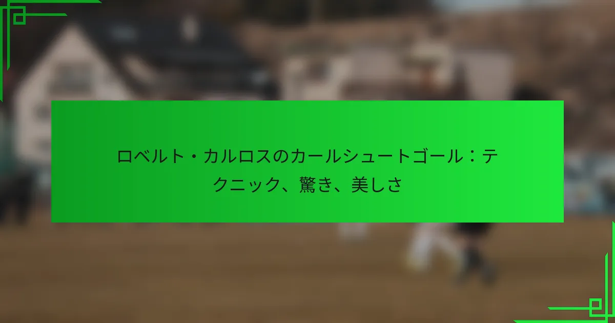 ロベルト・カルロスのカールシュートは、1997年のトゥルノワ・ド・フランスで決められた有名なフリーキックで、ファンや選手を驚かせる卓越した技術を披露しました。その重要性は、驚くべき実行だけでなく、サッカー文化に与えた持続的な影響と、世界中の選手がフリーキックに取り組む方法にあります。