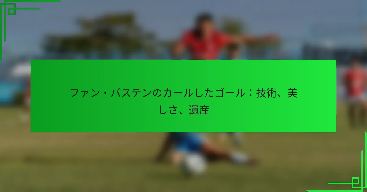 マルコ・ファン・バステンの1988年UEFA欧州選手権決勝でのカールしたゴールは、サッカーの歴史における決定的な瞬間であり、その技術的な素晴らしさと美的な美しさで称賛されています。その遺産は試合自体を超えて広がり、サッカー文化、ファンの認識、ファン・バステンのキャリアの軌道に影響を与えています。